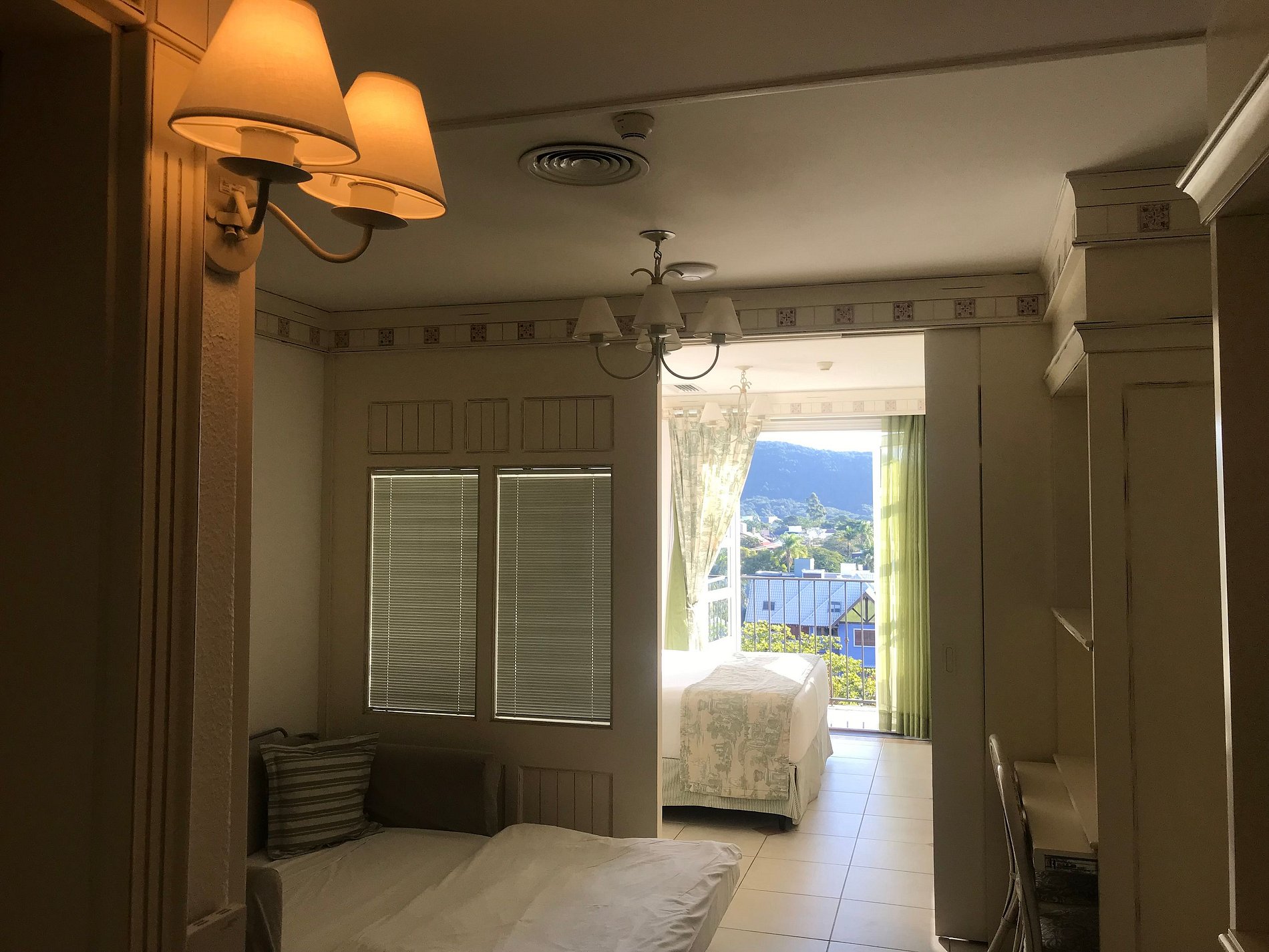 Suíte Junior Jurere (até 4 pessoas) com opção de cama de casal ou duas de solteiro, e um sofá cama na sala.