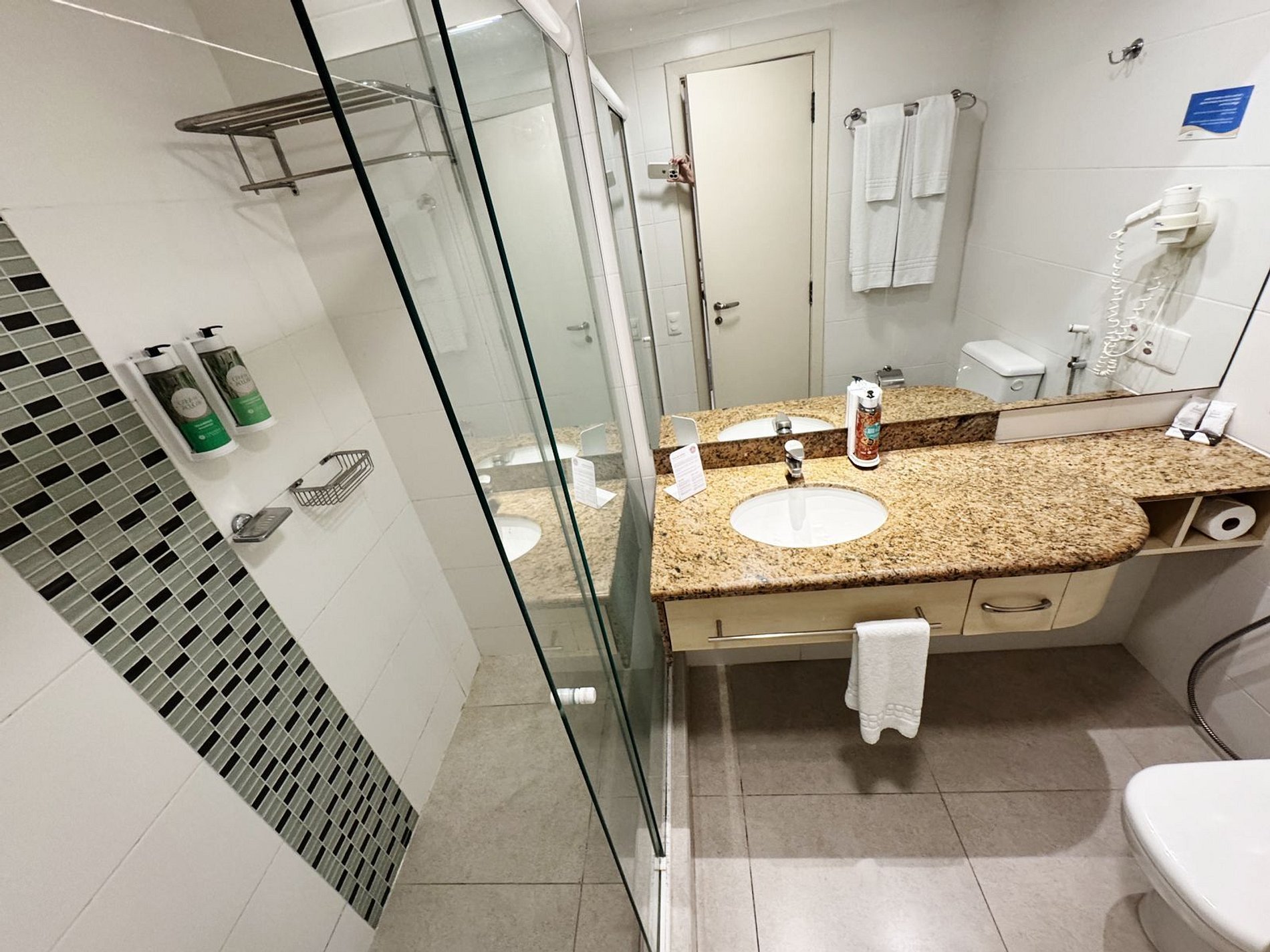 Oferece completa estrutura, com localização à beira mar (pé na areia), piscina aquecida, jacuzzi, serviço de praia, serviço diário de arrumação por camareira e amenities para banho: sabonete, shampoo e concicionador, sauna, academia, espaço Kids com recreacionista, sala de jogos, restaurante e bar (custo à parte). Café da manhã é opcional, não está incluído no valor.Apartamento reformado de 27m² com sacada, vista lateral mar; 2 camas solteiro, unidas formam cama casal; 1 cama extra embutida na parede, dimensão menor a cama solteiro; Mini cozinha com frigobar Micro-ondas utensílios de cozinha; TV a cabo LCD 32, frigobar, microondas, utensílios de cozinha, mesa, cadeiras, guarda roupas, ar condicionado, cofre, secador de cabelo.