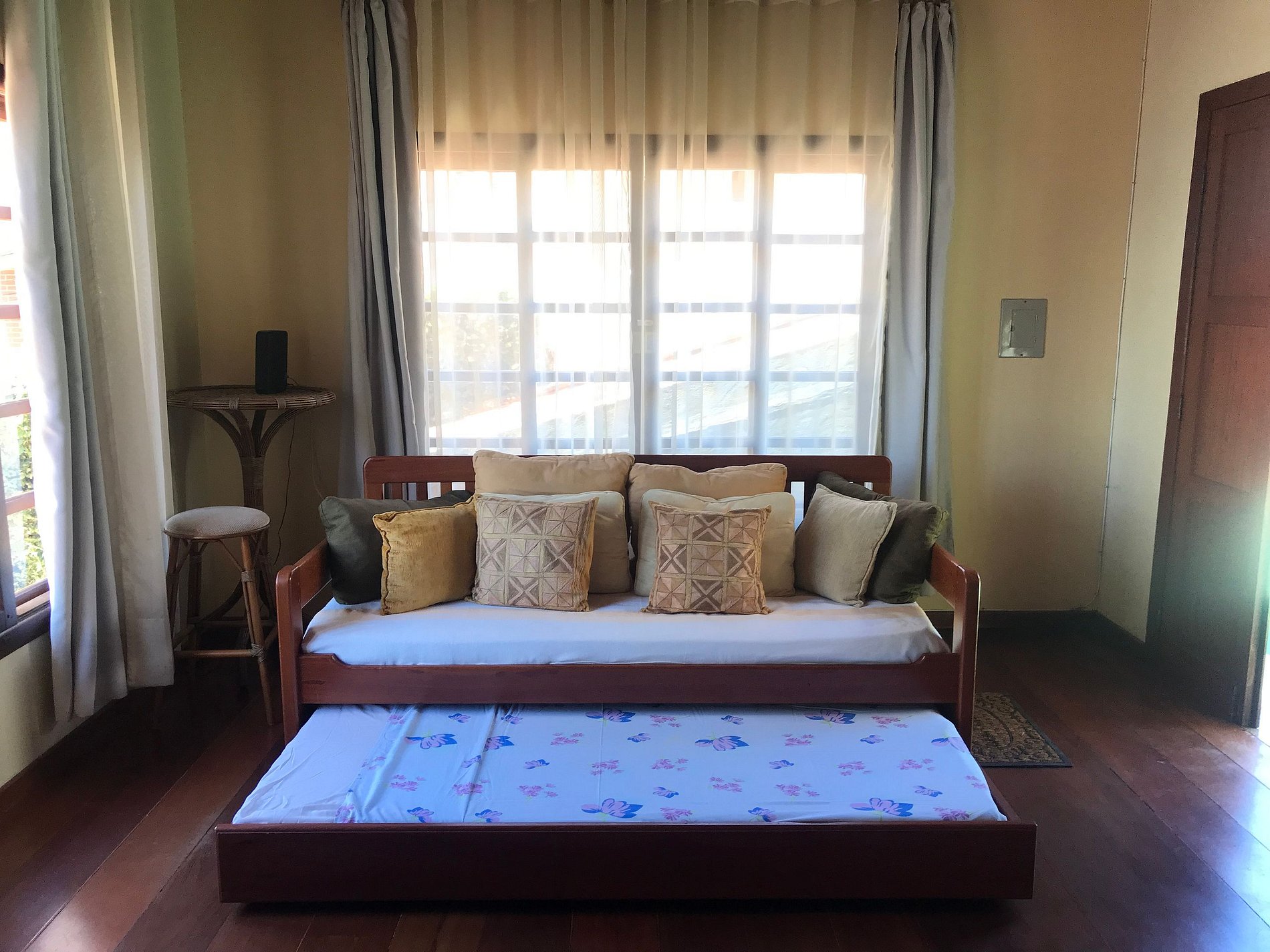 Acomoda até seis pessoas. 2 camas box, podendo serem arrumadas no formato casal ou solteiro, ventilador de teto. Quarto: Beliche, cabideiro e ventilador. Sala com TV, bi-cama, 2 camas box podendo serem arrumadas no formato casal ou solteiro, mesa. Cozinha planejada com geladeira, fogão a gás de 4 bocas, armários, pia, louças e talheres.