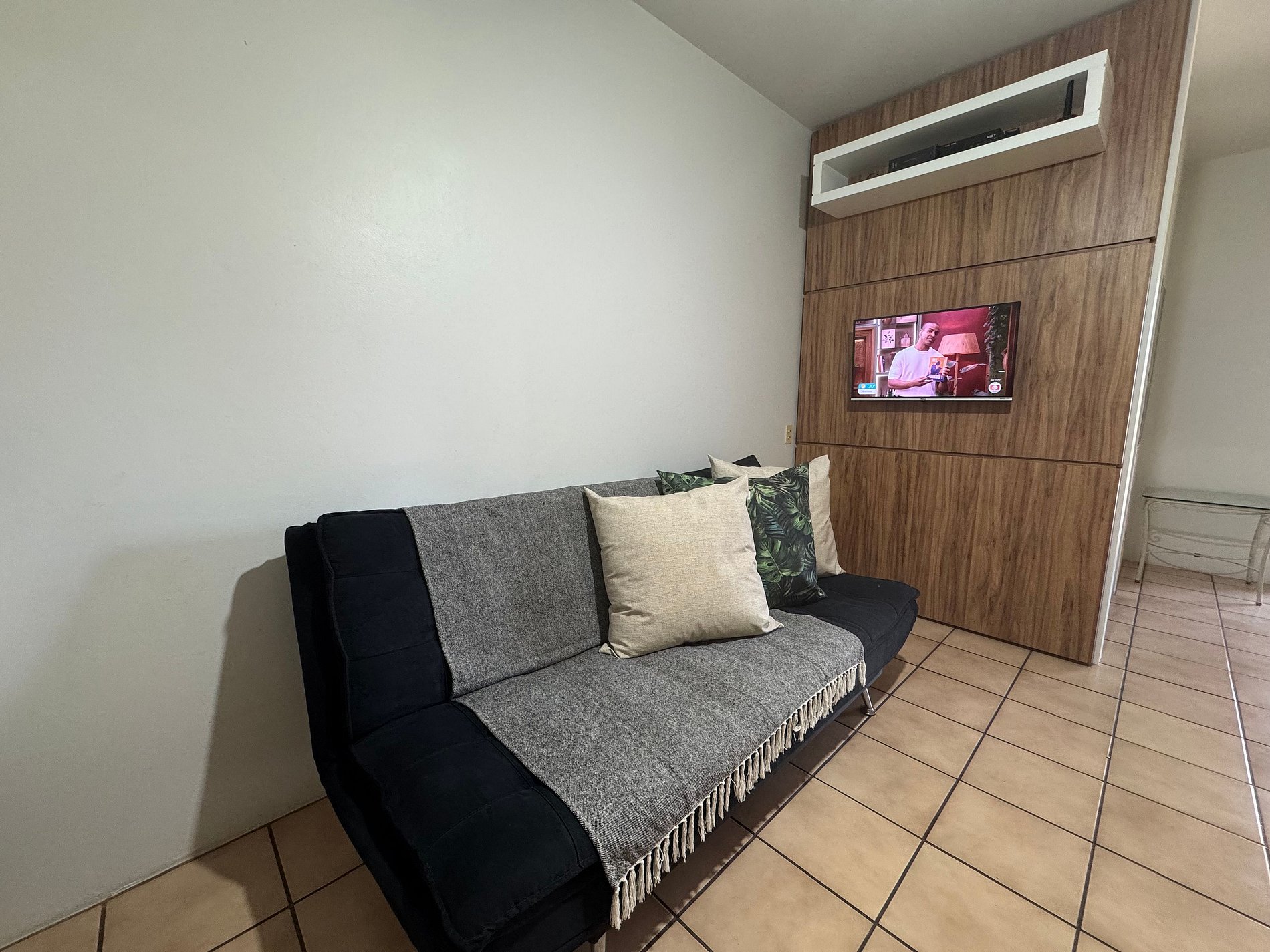 Apartamento de 1 quarto, amplo, ar-condicionado, excelente localização a uma quadra da praia no Coração de Jurerê