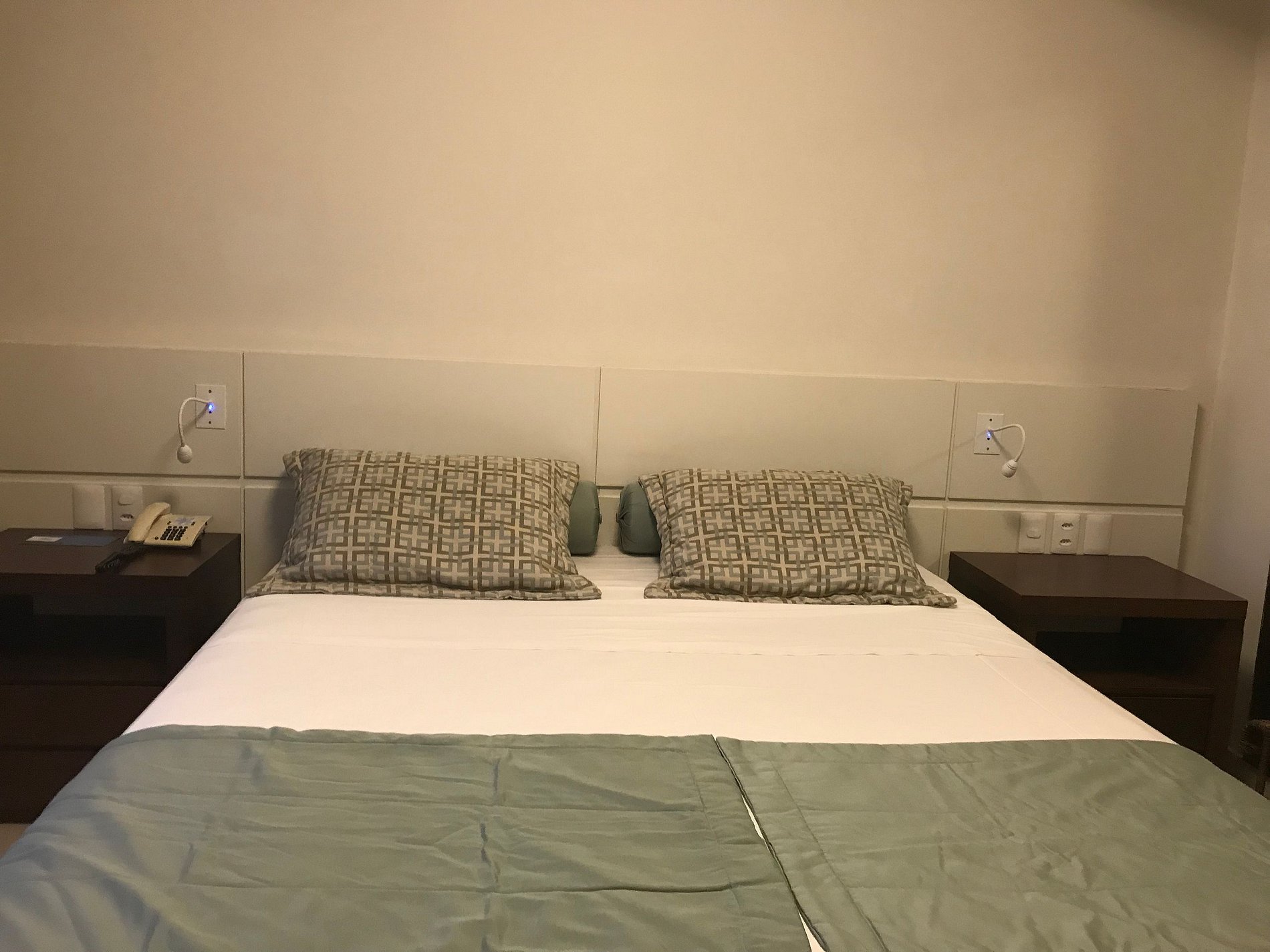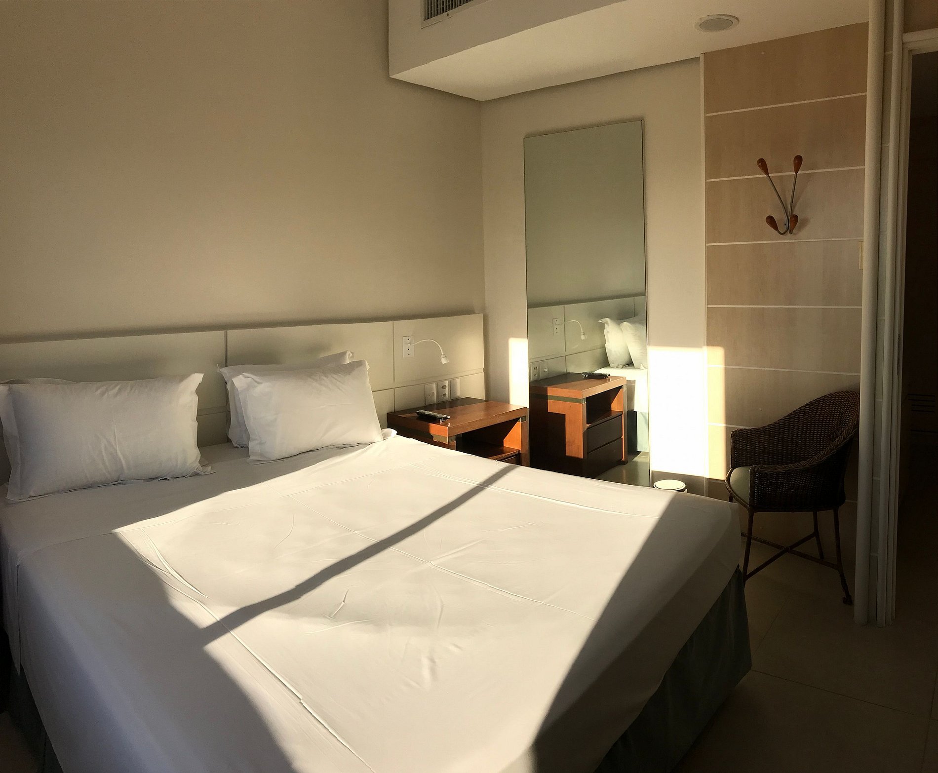 Quarto com cama de casal ou duas de solteiro, TV a cabo tela LCD 32”.