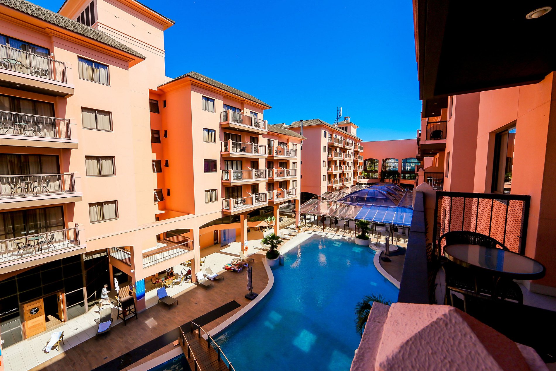 Oferece completa estrutura, com localização à beira mar (pé na areia), piscina aquecida, jacuzzi, serviço de praia, serviço diário de arrumação por camareira e amenities para banho: sabonete, shampoo e concicionador, sauna, academia, espaço Kids com recreacionista, sala de jogos, restaurante e bar (custo à parte). Café da manhã é opcional, não está incluído no valor.